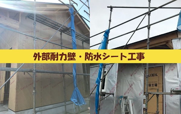 本日は外部耐力壁と防水シート工事現場にお邪魔しました。